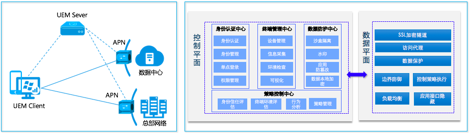 联软科技通过在网络安全、云安全、移动安全等领域的积累,发布了基于零信任架构的统一终端管理解决方案。通过细粒度的访问控制手段、可视化的策略管理能力和不落地的数据防泄露技术,提供按需、动态的可信访问,同时基于身份实行严格的访问权限控制和对所有入网设备的安全可控,联软UEM支持本地私有化部署和SaaS化部署,最终实现企业的统一终端管控。功能包含: