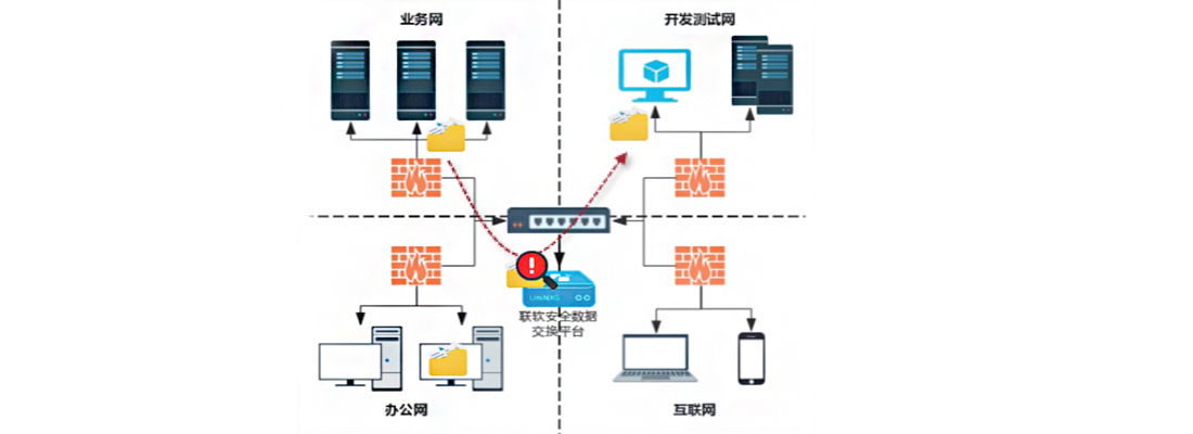 通过跨网数据安全交换平台进行文件高效安全地交换,保障文件流转通道唯一性;