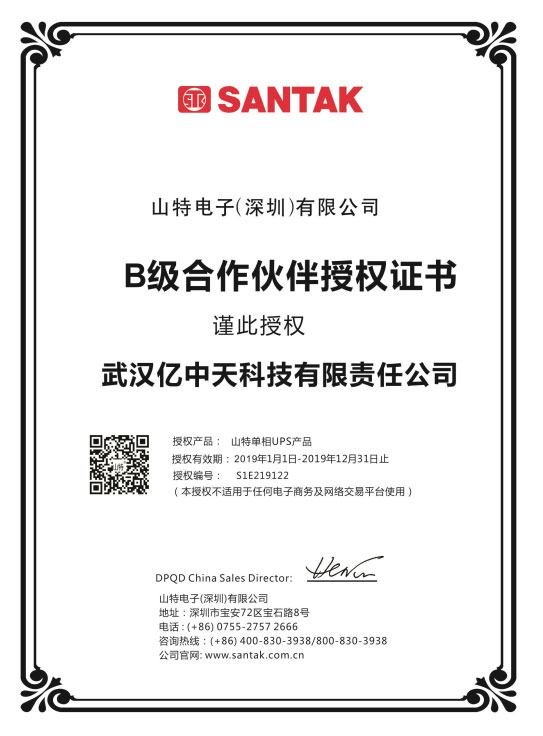 我们公司使用的是武汉亿中天供应的UPS设备,无论是在户外还是在室内的具体应用中,武汉亿中天供应的UPS设备都能让人放心。专业技术工程师与设计工程师,与我们的工作人员对接十分流畅,工作过程中体现了专业性,让我们十分钦佩。武汉亿中天供应的UPS设备让我们业务全流程信息化可靠程度更高,在激烈的竟争中如虎添翼。