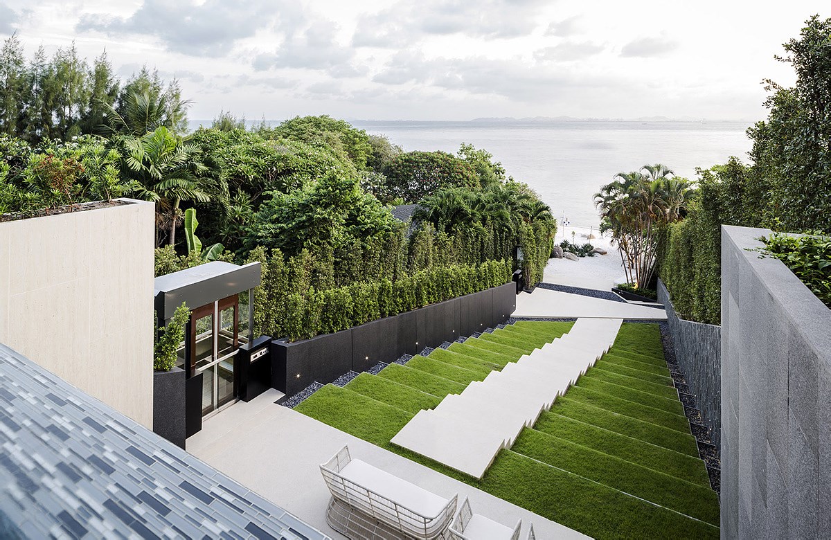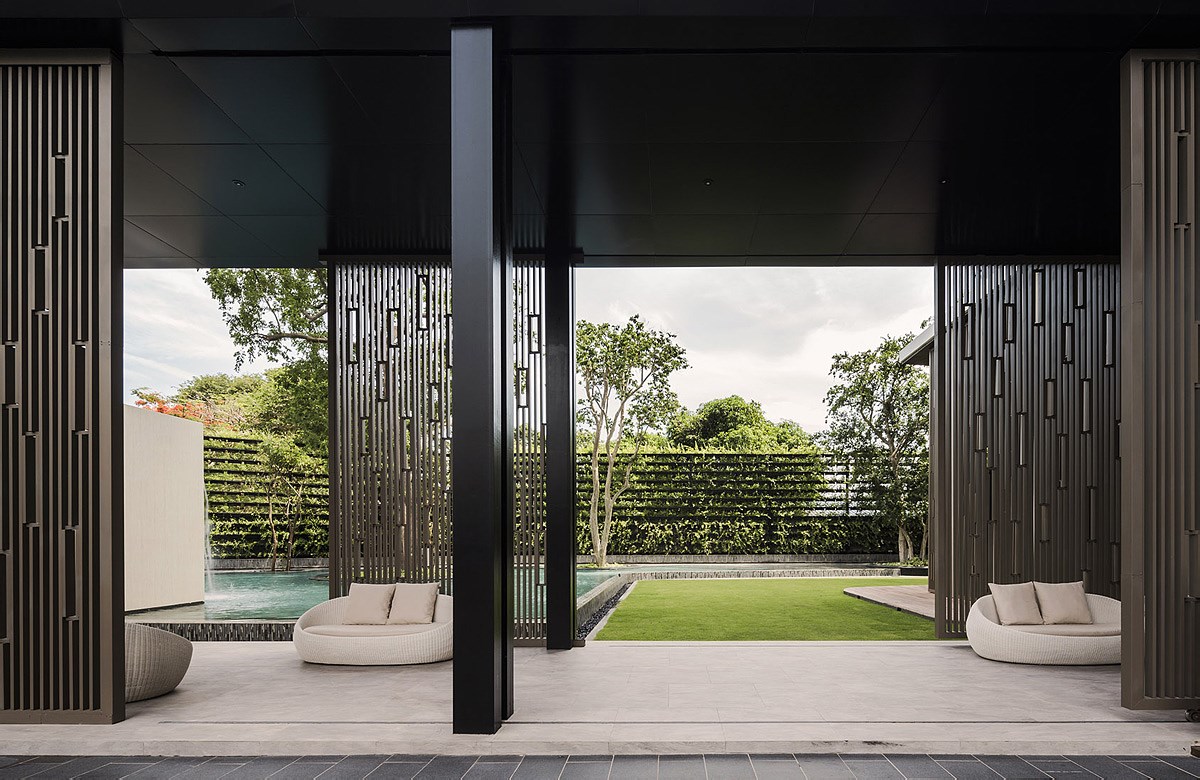 住宅的门窗均设有金属屏风,起到了调节光线以及增加安全性的作用。这些金属屏风使得庭院空间成为建筑室内与室外之间的转换空间,模糊了房子的边界。