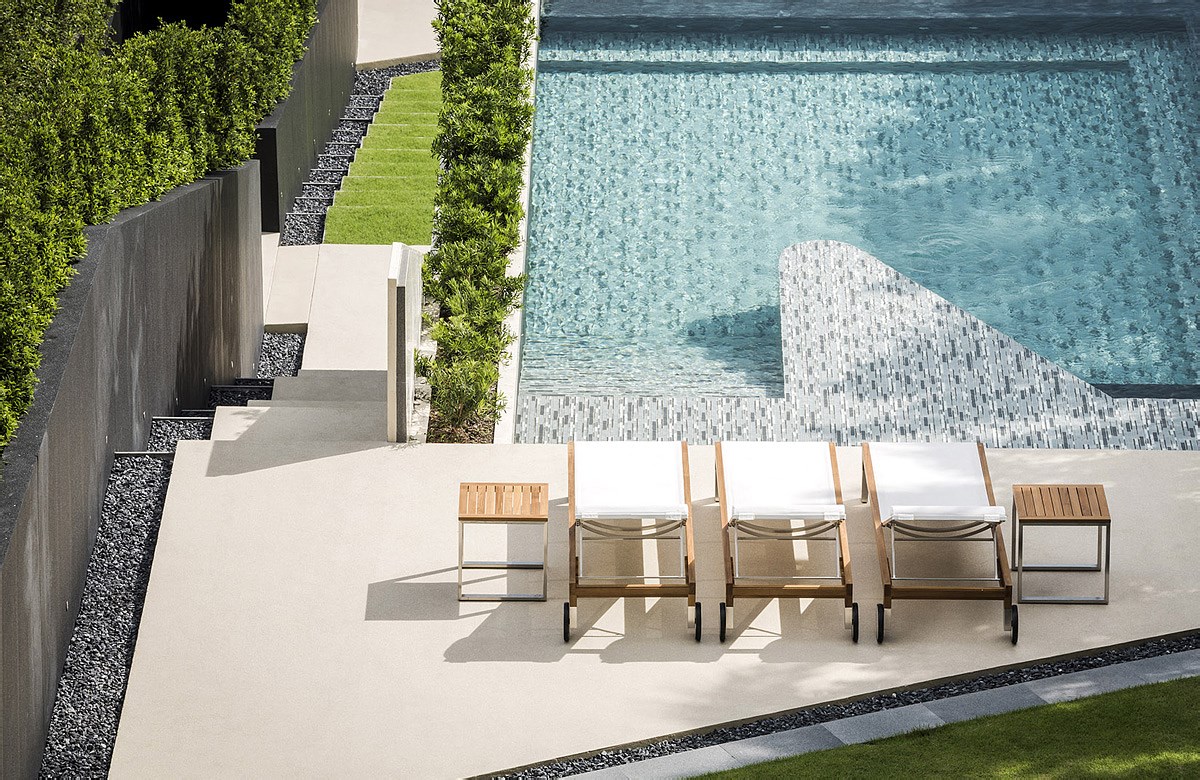 The openings throughout the house are regulated through a series of expanded metal shutters which provide light control and security. These shutters redraw the limits of the house by allowing the patios to shift from exterior to interior areas of the house.